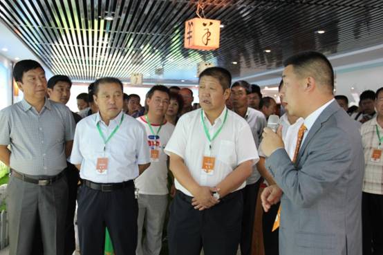 蒙羊牧業(yè)總裁閆樹(shù)春向來(lái)賓介紹蒙羊牧業(yè)工廠