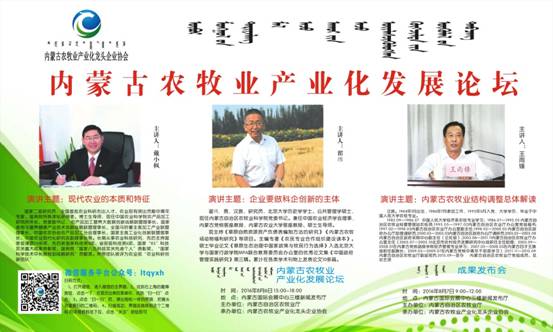 綠博會(huì)期間,由自治區(qū)農(nóng)牧業(yè)廳主辦、內(nèi)蒙古農(nóng)牧業(yè)產(chǎn)業(yè)化龍頭企業(yè)協(xié)會(huì)承辦的內(nèi)蒙古農(nóng)牧業(yè)產(chǎn)業(yè)化發(fā)展論壇如期舉行。論壇旨在推動(dòng)現(xiàn)代農(nóng)牧業(yè)發(fā)展方式轉(zhuǎn)變,聚焦農(nóng)牧業(yè)供給側(cè)結(jié)構(gòu)性改革和互聯(lián)網(wǎng)+發(fā)展思路,邀請(qǐng)區(qū)內(nèi)外農(nóng)牧業(yè)領(lǐng)域知名專家和學(xué)者現(xiàn)場(chǎng)傳授,共同探討,共享綠博會(huì)成果,共商產(chǎn)業(yè)發(fā)展大計(jì)。論壇同期發(fā)布第四屆內(nèi)蒙古名優(yōu)特農(nóng)畜產(chǎn)品和第三屆包裝設(shè)計(jì)大賽評(píng)審結(jié)果,內(nèi)蒙古日?qǐng)?bào)、農(nóng)民日?qǐng)?bào)82日第四版同時(shí)公布獲獎(jiǎng)名單,敬請(qǐng)關(guān)注。