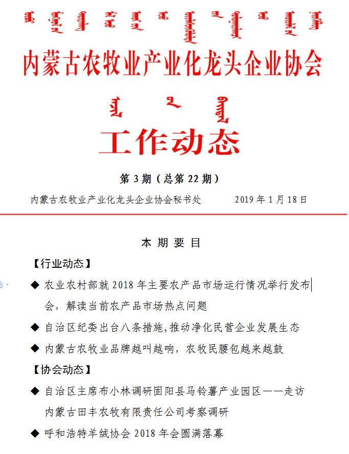 內蒙古農牧業(yè)產業(yè)化龍頭企業(yè)協會工作動態(tài)第3期(總第22期)