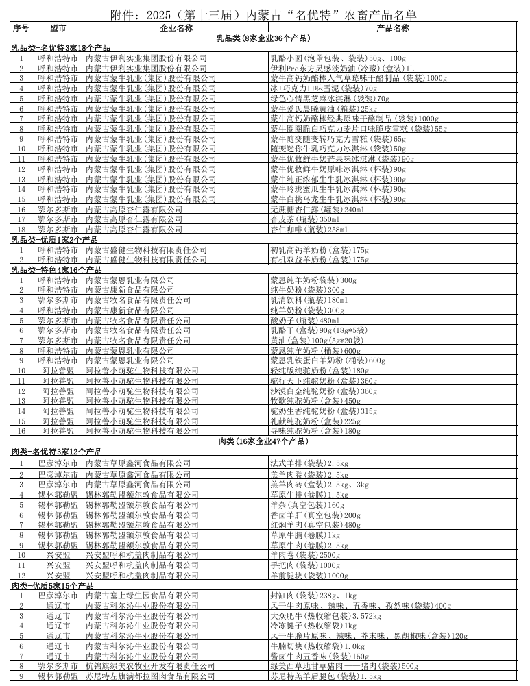 2025第十三屆內(nèi)蒙古“名優(yōu)特”農(nóng)畜產(chǎn)品名單公告
