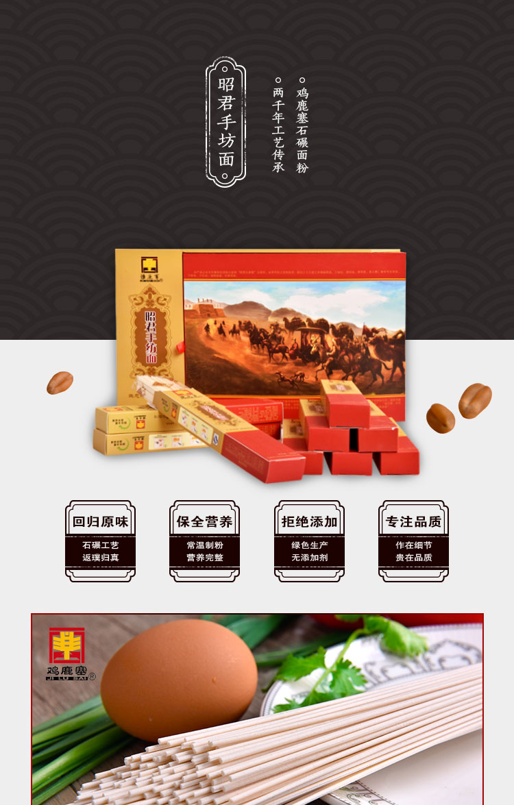 產(chǎn)品名稱(chēng):雞鹿塞 昭君手紡面 精品禮盒 1.8kg 手工細(xì)面 禮盒