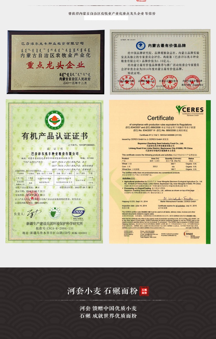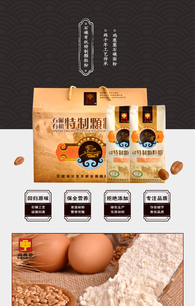 產(chǎn)品名稱:雞鹿塞 石碾有機(jī)特制顆粒粉 精品禮盒 4.8kg 河套面粉 餃子粉
