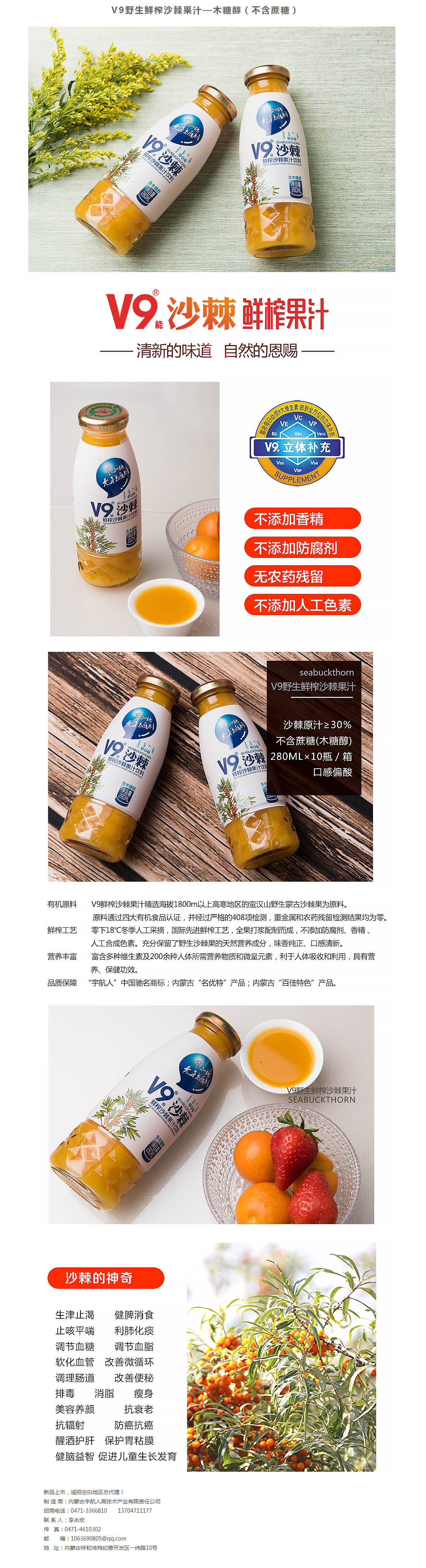 產(chǎn)品名稱:V9野生鮮榨沙棘果汁—木糖醇(不含蔗糖)