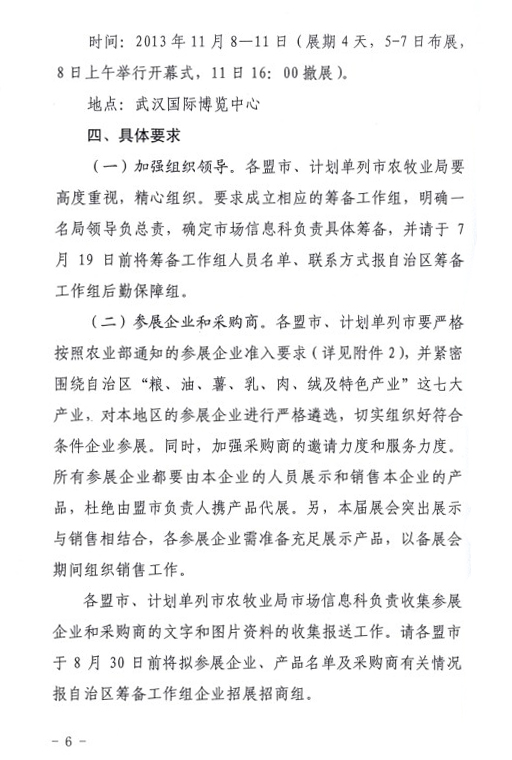 關(guān)于印發(fā)內(nèi)蒙古自治區(qū)參加第十一屆中國國際農(nóng)產(chǎn)品交易會(huì)工作方案的通知
