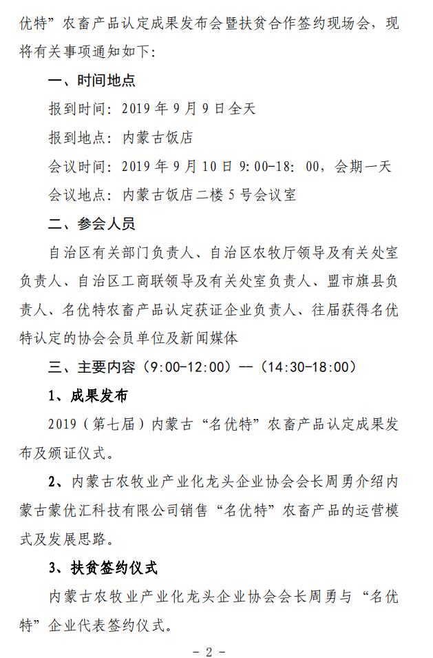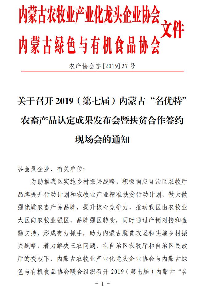 關(guān)于召開 2019(第七屆)內(nèi)蒙古“名優(yōu)特” 農(nóng)畜產(chǎn)品認(rèn)定成果發(fā)布會暨扶貧合作簽約 現(xiàn)場會的通知
