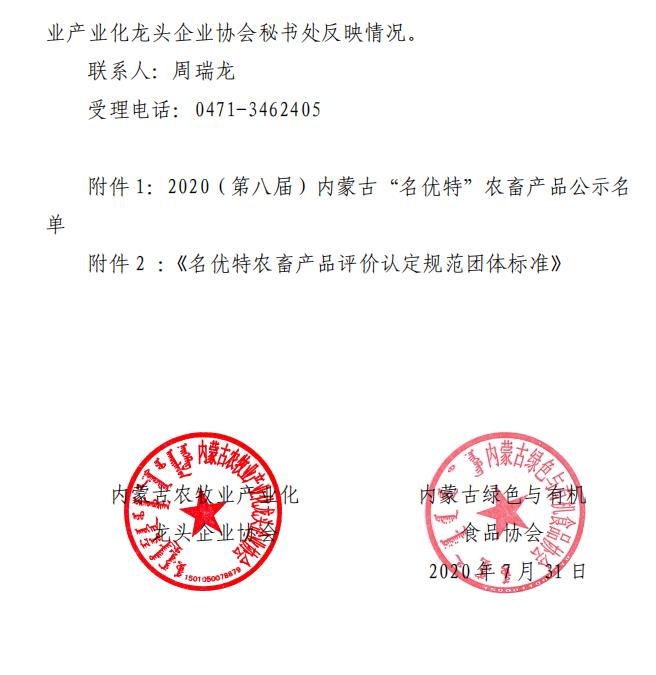 2020第八屆內(nèi)蒙古“名優(yōu)特”農(nóng)畜產(chǎn)品認定公示名單