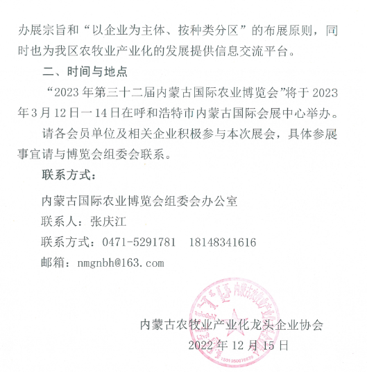 關于組織參加2023年第三十二屆內蒙古國際農(nóng)業(yè)博覽會的通知