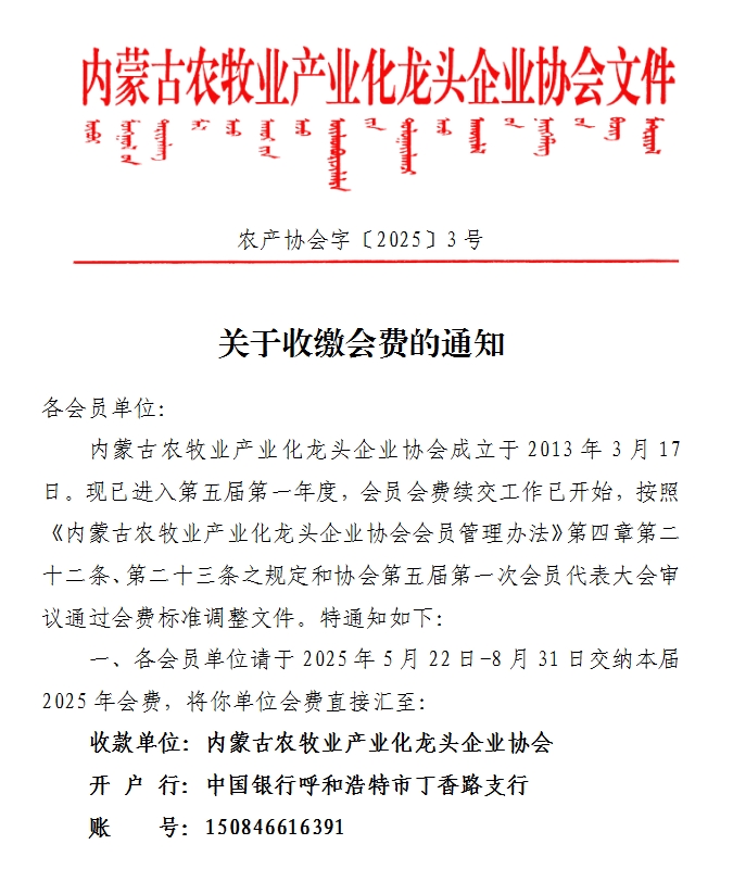 關(guān)于收繳會費(fèi)的通知