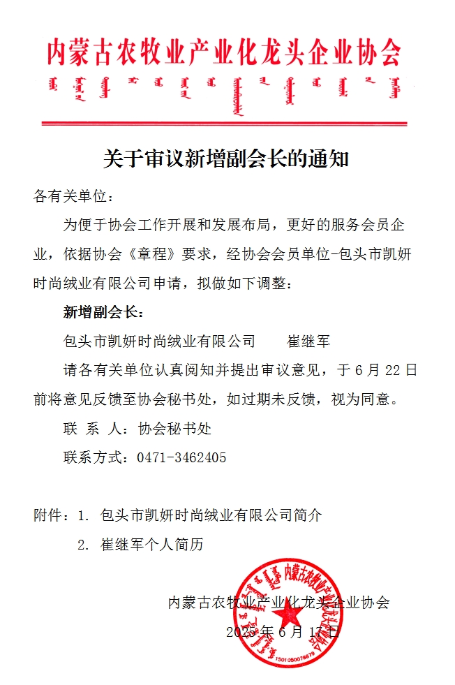 關于審議新增副會長的通知