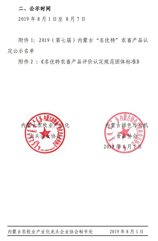 2019第七屆內(nèi)蒙古“名優(yōu)特”農(nóng)畜產(chǎn)品認(rèn)定公示名單