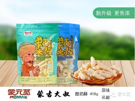 蒙古大叔系列奶貝是蒙元寬全新打造的一個(gè)奶貝品牌,致力于釀造獨(dú)具風(fēng)味、多滋多彩的新式休閑奶貝。華美靚裝,新鮮上市,精彩再現(xiàn)。蒙古大叔奶貝秉承傳統(tǒng)奶貝的醇、香、濃,匯聚潮流風(fēng)味,精工細(xì)作而成。